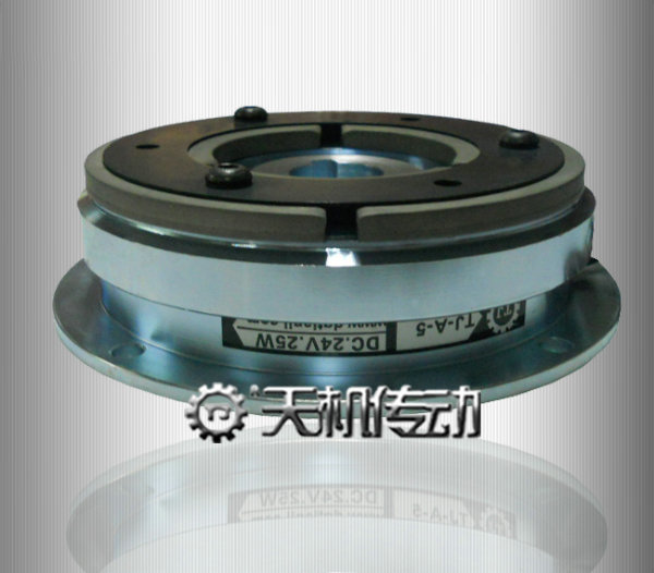 天機傳動干式電磁離合器由銜鐵(電樞板)、定子、轉子、板型彈簧片、磁性線圈、來令片、軸承等元件構成,統一使用DC24V,標準規格0.6-40KG。