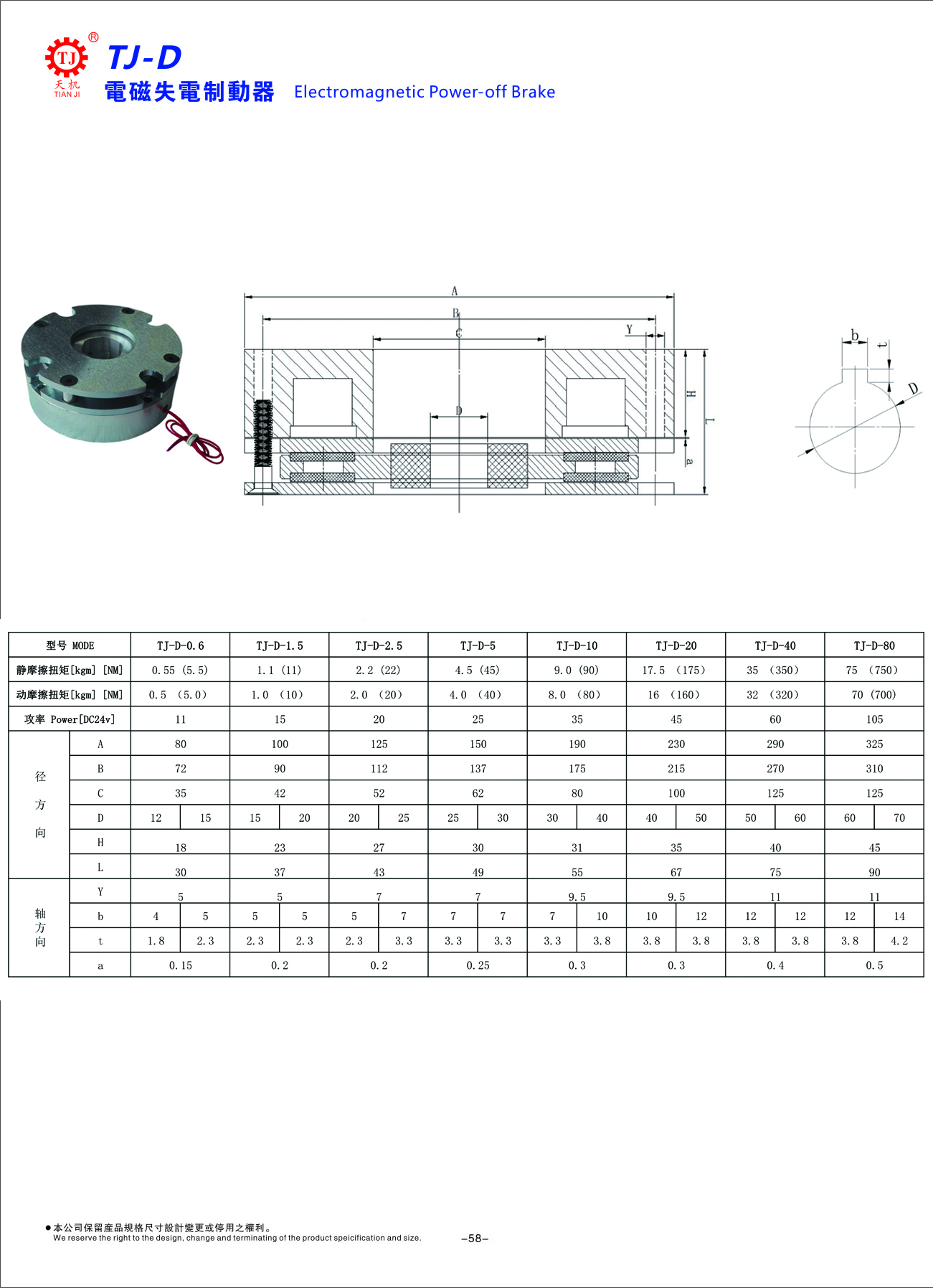 天機傳動電磁失電制動器(TJ-D)的安裝尺寸及規格參數如下: